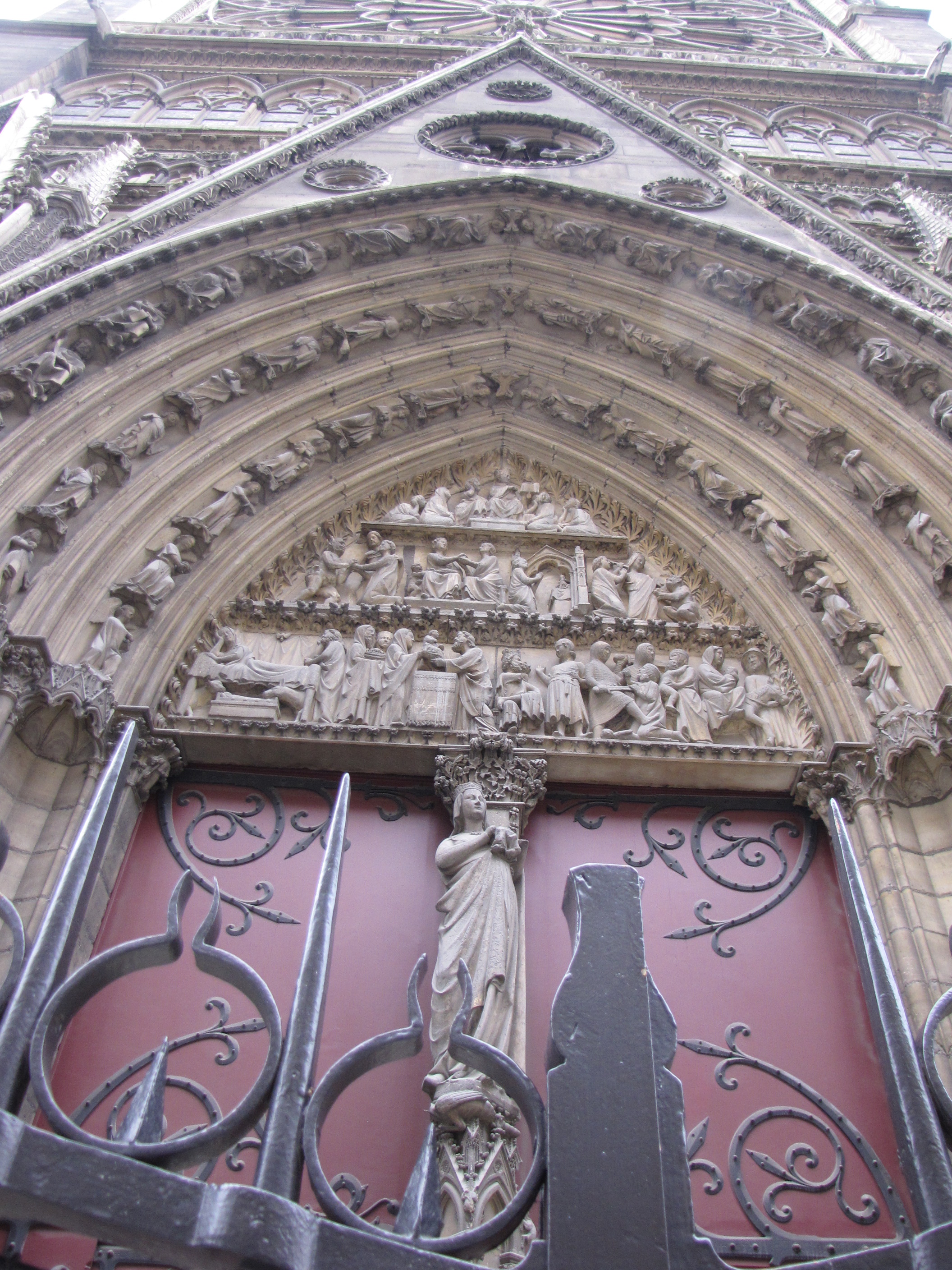 I made my way to the right of the cathedral, where small lawns and a children’s play area run along between the building and the river that keeps the building on an island. No one followed me, and I could tell I was following few. It shouldn’t have surprised me; either despite or because of the politics, religion, culture, and literature (and the Disney) that encompass Notre Dame, it’s now primarily a tourist attraction. People take pictures of the front, line up to go inside, and leave. It’s a bit of a pity, I think, because I could have spent all afternoon circling this place, examining the details of the architecture, the wear of 850 years passing, the spiritual figures conceptualized and immortalized in stone.